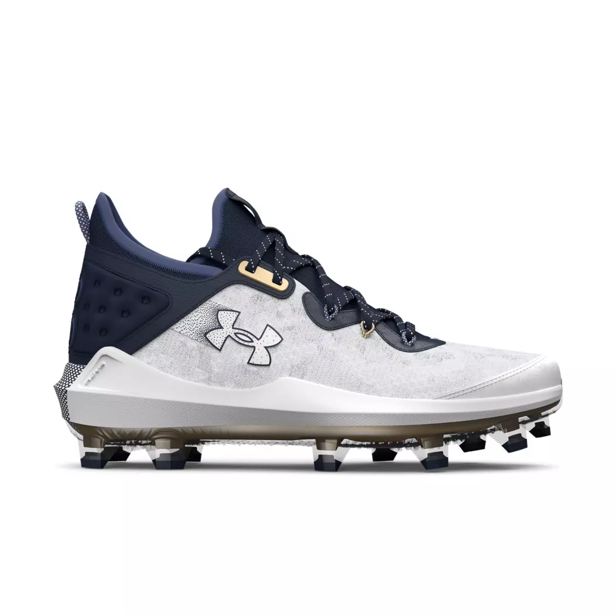 These Under Armour Harper 8 Elite TPU "White/Midnight Navy" Men's Baseball Cleats are a high-performance cleat designed to provide maximum comfort and support. These cleats feature an elevated woven upper that is built to last and has a clean, modern look, as well as durability in high-wear areas for full-season wear. These cleats are perfect for any level of baseball player looking for a cleat that can keep up with their game.Features