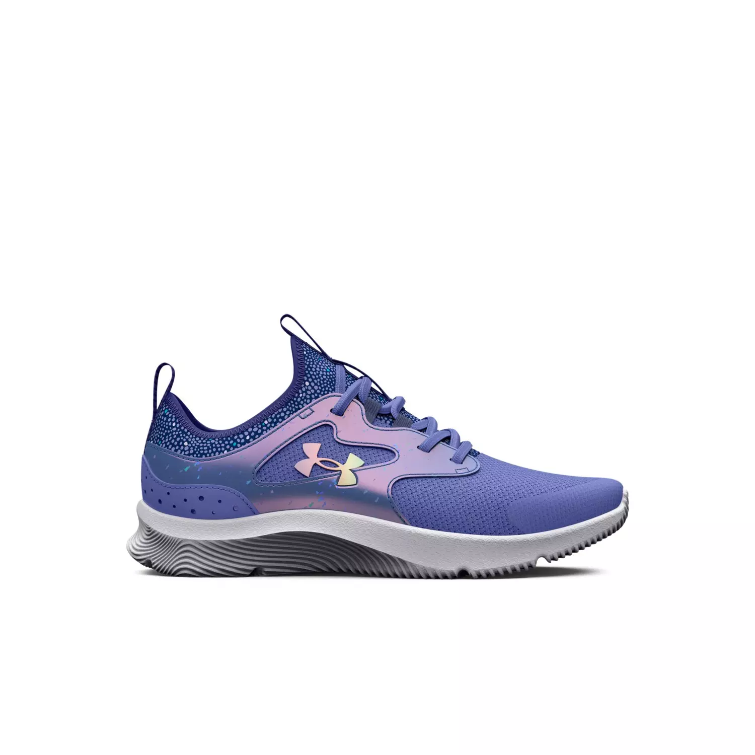 The Under Armour Infinity 2.0 AL Printed "Baja Blue/Iridescent" Preschool Girls' Running Shoe keeps little feet moving with lightweight cushioning and a breathable mesh upper. A soft foam midsole absorbs impact for everyday play, while the flexible rubber outsole adds traction on playgrounds and gym floors.
