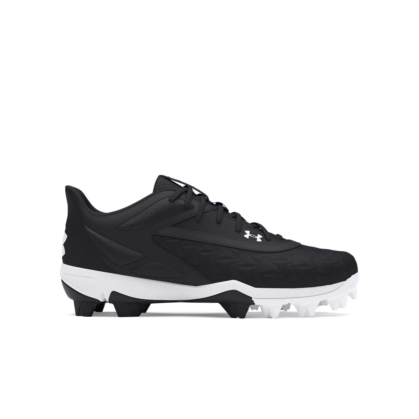 Step up to the plate in the most comfortable cleats in the ballpark. Under Armour Leadoff Low RM 3.0 Jr. "Black/Black/White" Grade School Boys' Baseball Cleat got a soft, padded collar, the right amount of cushioning, and cleats that give you optimum traction without any underfoot pressure.Features
