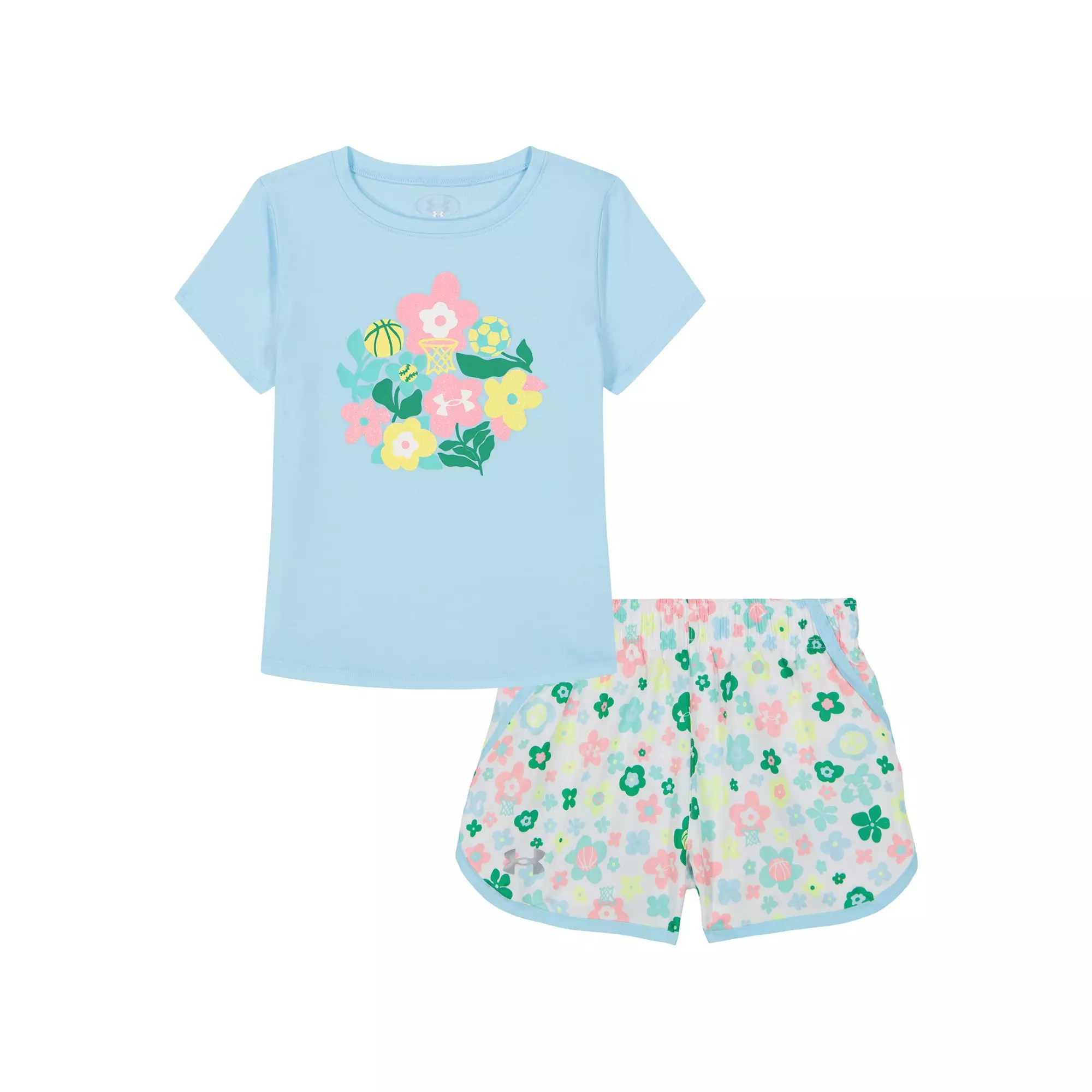 Under Armour Little Girls' Printed Flower Woven Short Set - Blue/Multi