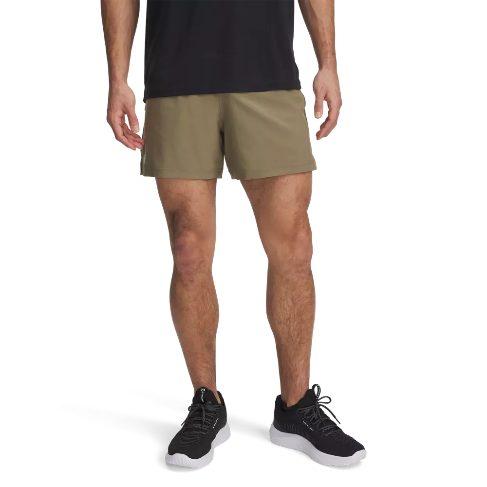 Under Armour Men's Tech Woven 5" Shorts deliver lightweight warmth and help keep muscles ready. The woven fabric packs down small to fit in any bag.