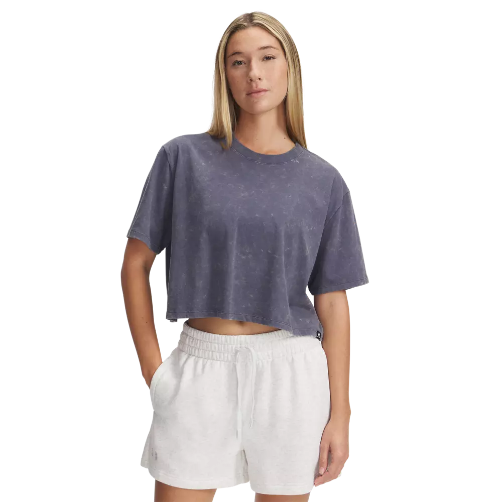The Under Armour Women's Rival Wash Tee is a graphic tee featuring light, soft fabric that dries quickly. Its roomy, oversized fit offers relaxed movement and enhanced airflow.