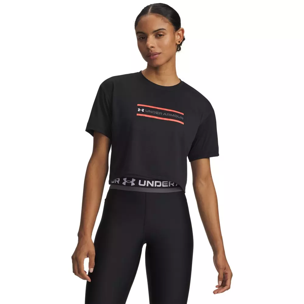 Under Armour Women's Tech Branded Cropped Short Sleeve - Black/Red/White