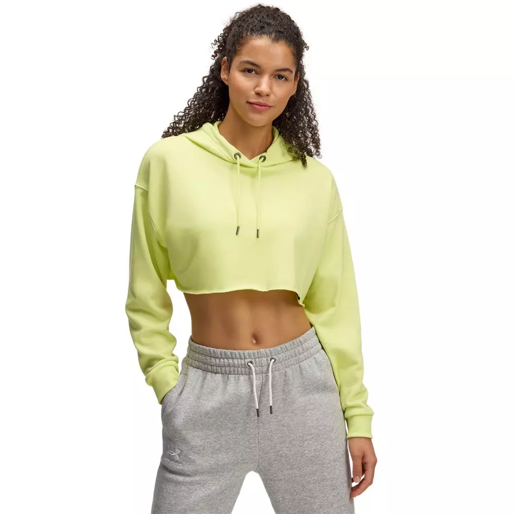 The Under Armour Women’s UA Icon Terry Crop Hoodie - Yellow/White delivers lightweight warmth with soft, smooth-faced terry that won’t overheat. The cropped cut layers easily over tanks and tees, while the roomy hood and ribbed cuffs keep you comfortable during cool mornings or post-workout cooldowns.