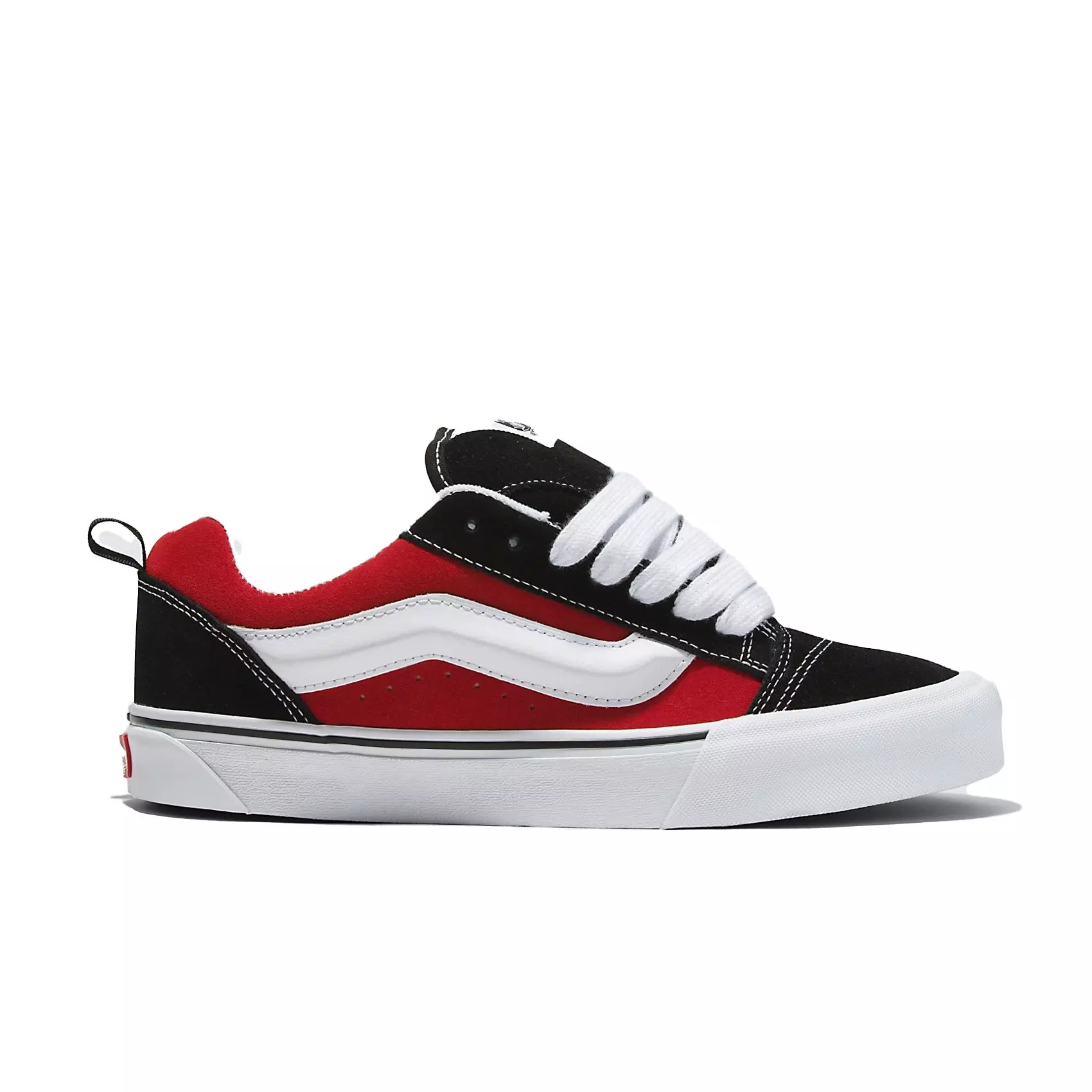 The Vans Knu Skool "Red/Black/White" Unisex Shoe revisits 90s heritage with a bold silhouette inspired by the original Old Skool™ and distinctive tactile details. It seamlessly merges classic athletic roots with present-day street style.
