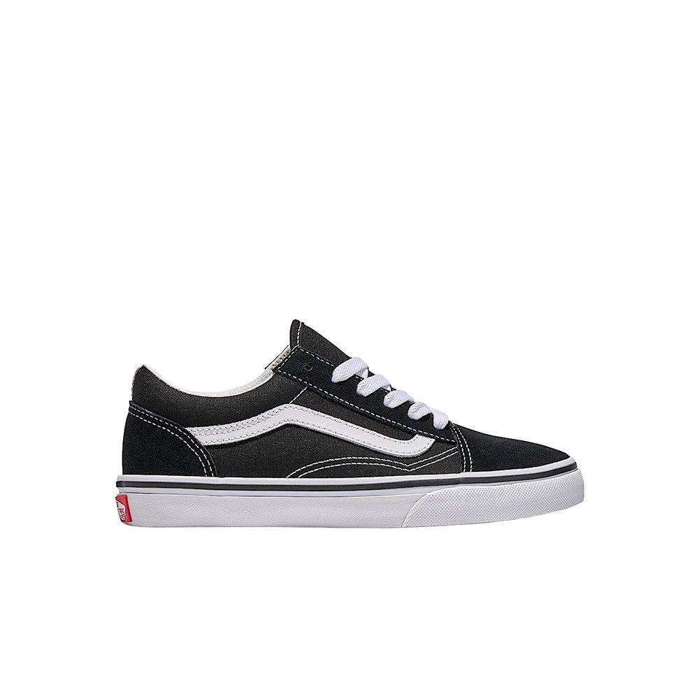 The Vans Old Skool "Black/White" Grade School Boys' Shoe features sturdy canvas and leather uppers, reinforced toecaps that withstand repeated wear and padded collars providing flexible ankle support. This classic silhouette first sported the iconic sidestripe and sets the standard in skate-inspired style.These low-top lace-ups feature an easy lace-up closure ensuring a snug, customizable fit. Signature rubber waffle outsoles deliver reliable traction and long-lasting durability under every play scenario.