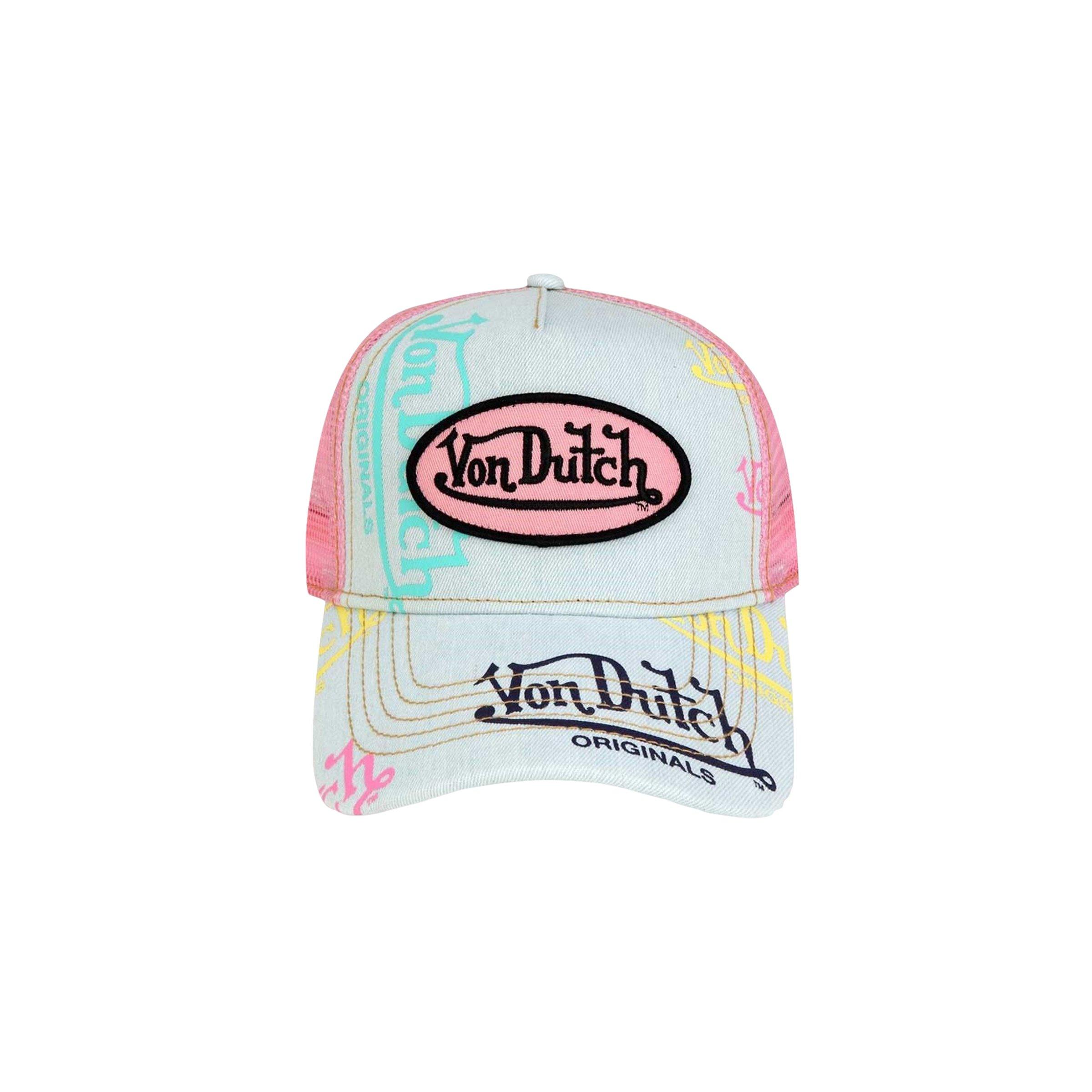 The Von Dutch Gradient Trucker Snapback Hat-White/Pink adds casual cool to your wardrobe. You get breathable mesh back panels and an adjustable snapback closure that ensure all-day comfort and ventilation during outdoor adventures, road trips and everyday wear.You’ll appreciate the structured crown that maintains a crisp silhouette and the front’s eye-catching gradient design that elevates your style. This classic trucker silhouette pairs effortlessly with laid-back outfits.