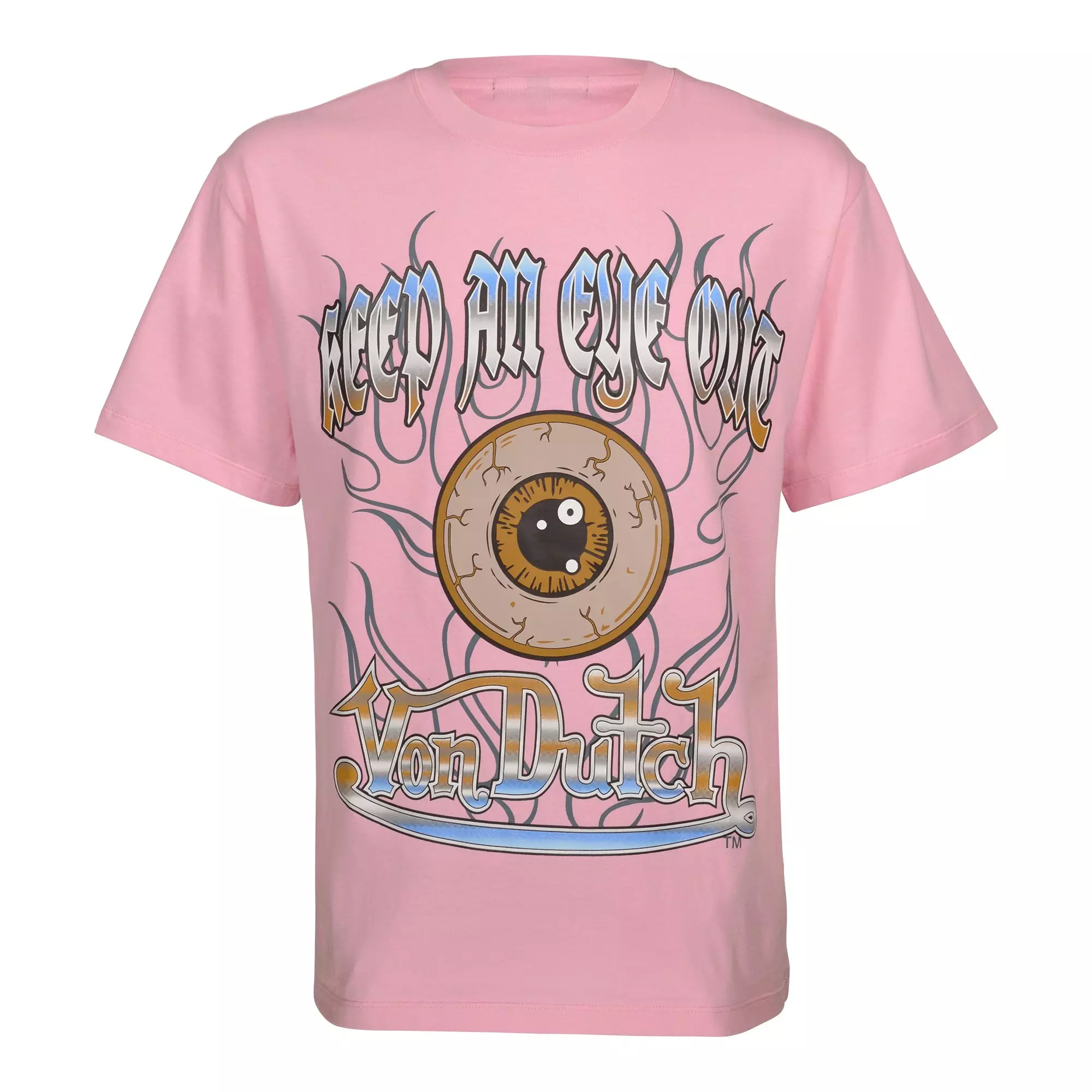 The Von Dutch Men's Keep An Eye Out Tee - Light Pink features the brand’s iconic logo and an edgy street-style design. It is crafted from soft, breathable cotton that delivers all-day comfort and a relaxed fit that moves with you.