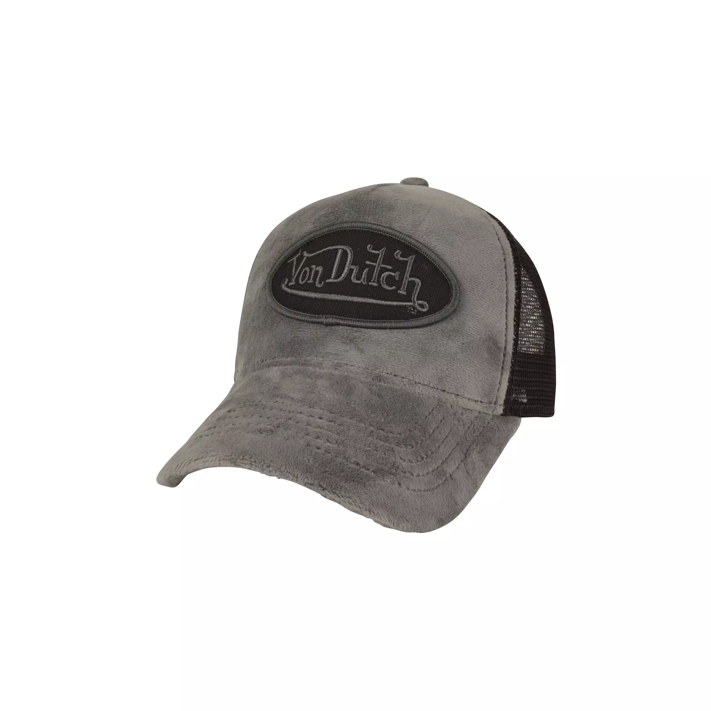 Add a touch of casual cool to your wardrobe with this Von Dutch Velvet Trucker Snapback Hat-Grey. The breathable mesh back panels and adjustable snapback closure ensure all-day comfort and ventilation, making it perfect for outdoor adventures, road trips, or everyday wear. The front features a unique Von Dutch patch that enhances your personal style, while the structured crown keeps the hat looking sharp and fresh. A classic trucker with modern flair, this hat pairs effortlessly with any laid-back outfit.Features