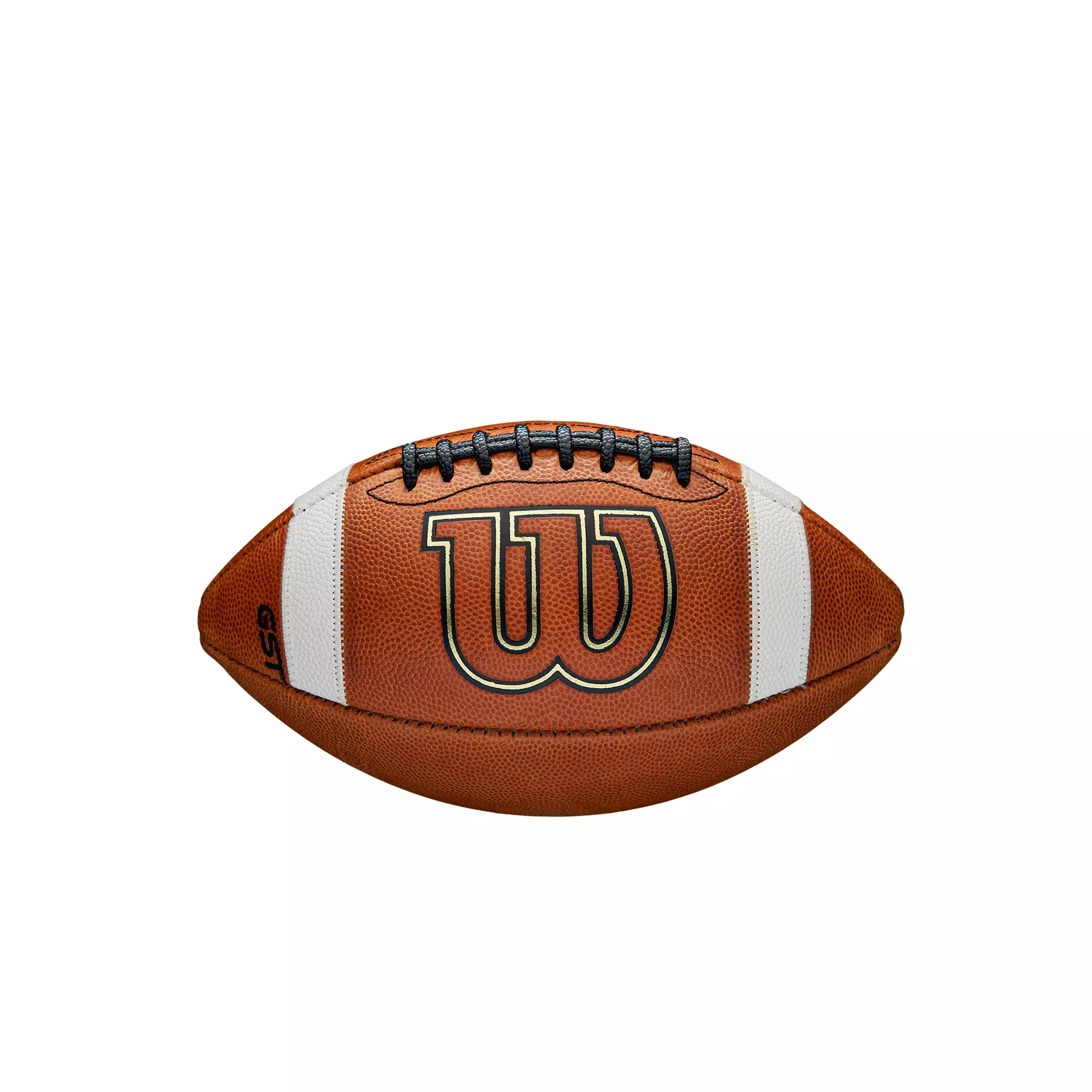 The Wilson GST Leather Pee Wee Football features a premium leather cover, multi-layered lining, and a butyl rubber bladder that enhance durability. ACL™ pebbled composite laces deliver unmatched grip over traditional laces. Designed to meet play standards, it withstands tough conditions and aggressive tackles.