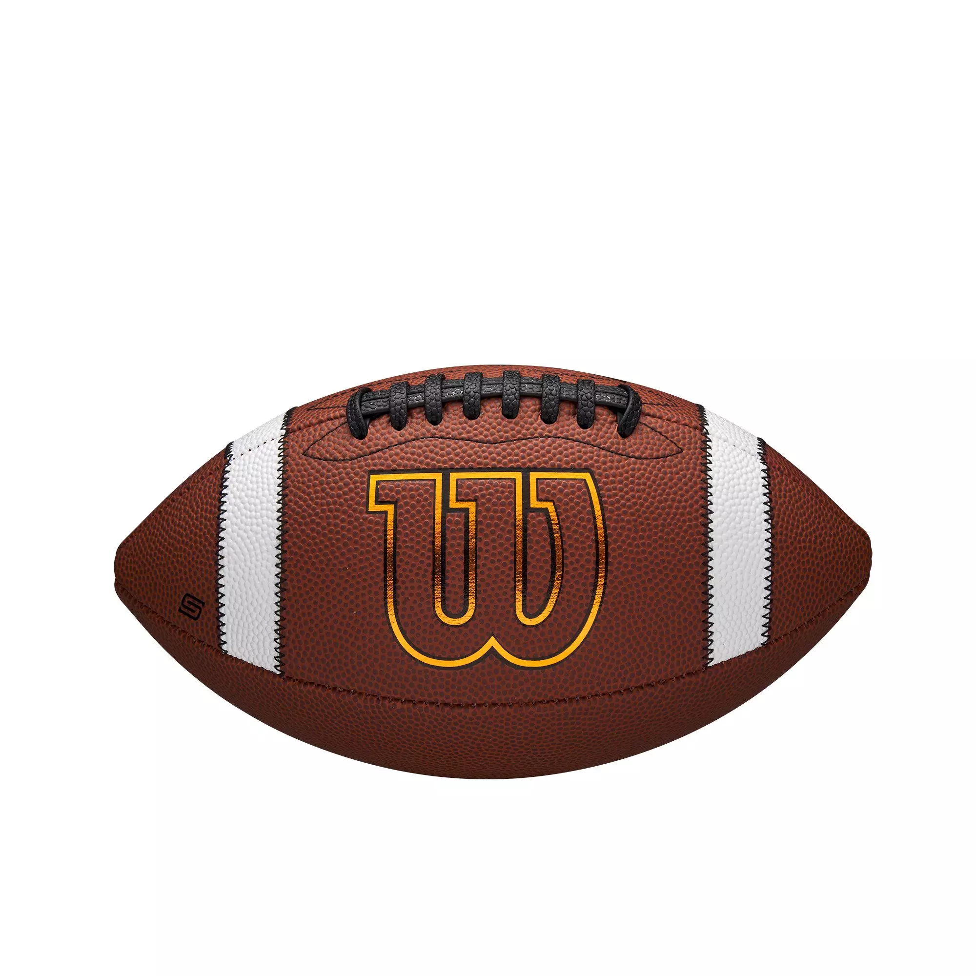 The Wilson GST SpeedSkin One Youth Football features patented ACL laces and exclusive Wilson patterns. It uses SpeedSkin leather technology, precision laces and sewn stripes as an affordable alternative to the famous GST game football series.